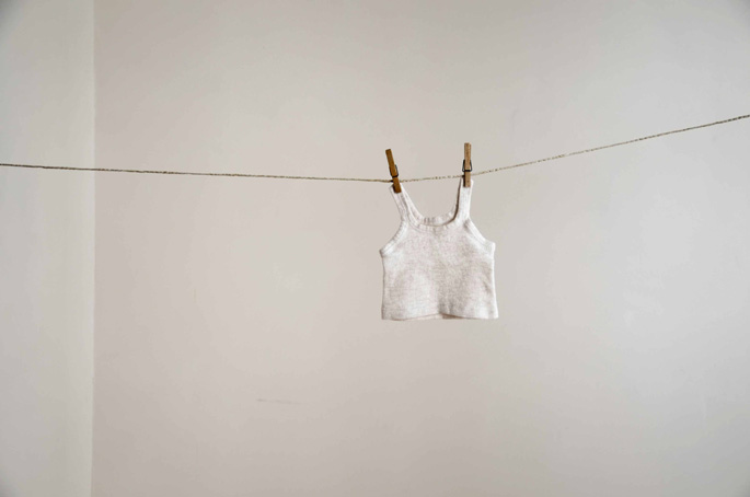 o.T. (Wäscheleine), Installation (Hanfseil, Wollhemd, Wäscheklammern), Maße variabel, 2001